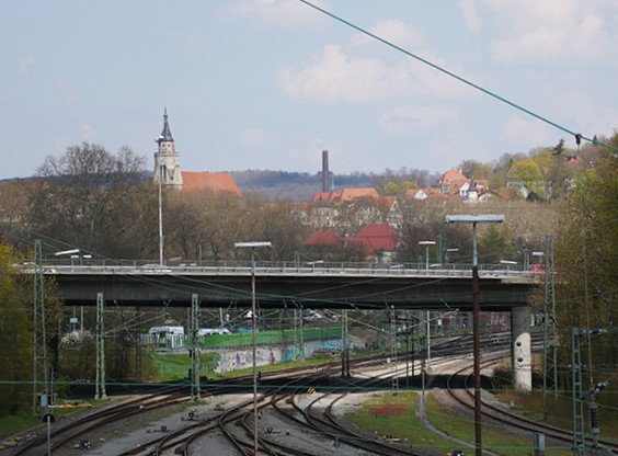 Bahngleise mit Blick auf die Stiftskirche Tübingen. Foto: tünews INTERNATIONAL / Martin Klaus.