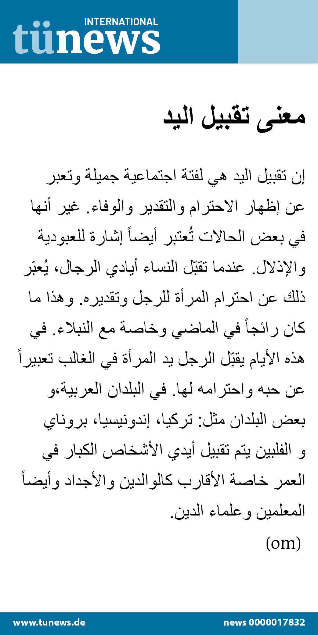 إن تقبيل اليد هي لفتة اجتماعية جميلة وتعبر عن إظهار الاحترام والتقدير والوفاء. غير أنها في بعض الحالات تُعتبر أيضاً إشارة للعبودية والإذلال. عندما تقبّل النساء أيادي الرجال، يُعبّر ذلك عن احترام المرأة للرجل وتقديره. وهذا ما كان رائجاً في الماضي وخاصة مع النبلاء. في هذه الأيام يقبّل الرجل يد المرأة في الغالب تعبيراً عن حبه واحترامه لها. في البلدان العربية،و بعض البلدان مثل: تركيا، إندونيسيا، بروناي و الفلبين يتم تقبيل أيدي الأشخاص الكبار في العمر خاصة الأقارب كالوالدين والأجداد وأيضاً المعلمين وعلماء الدين.