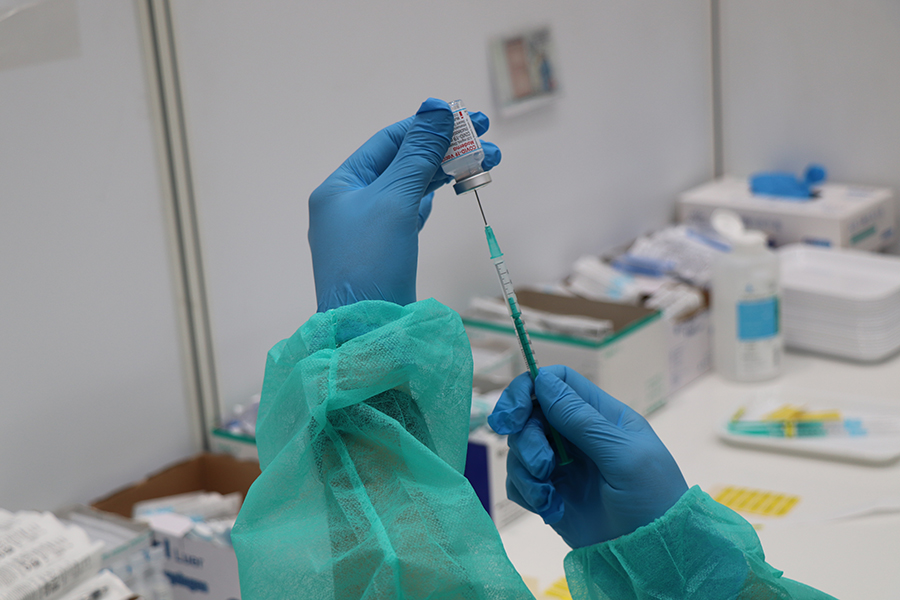 Spritzen werden mit Impfstoff befüllt. Foto: tünews INTERNATIONAL / Mostafa Elyasian.