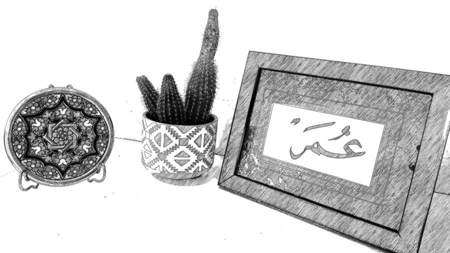 Eine arabische Kalligraphie des Namens Omar. Foto: tünews INTERNATIONAL / Oula Mahfouz.