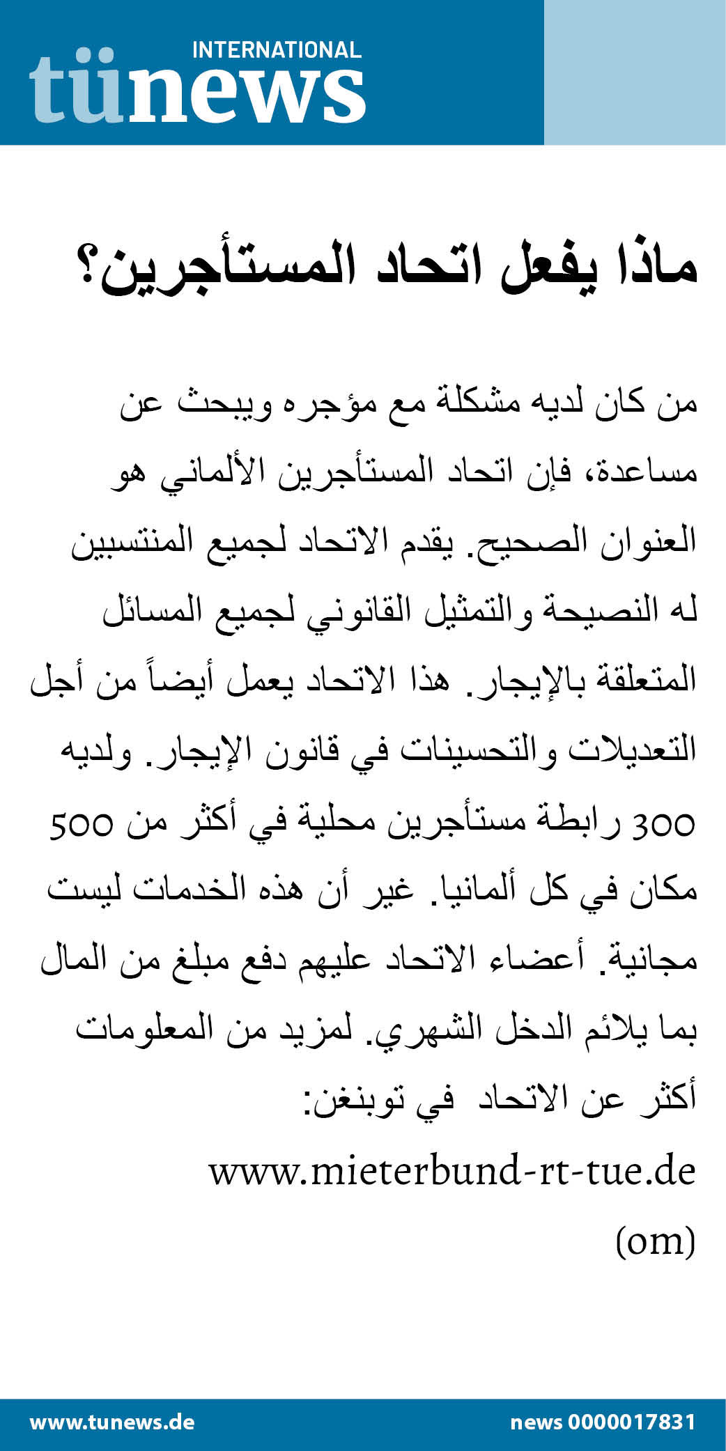 ماذا يفعل اتحاد المستأجرين؟ من كان لديه مشكلة مع مؤجره ويبحث