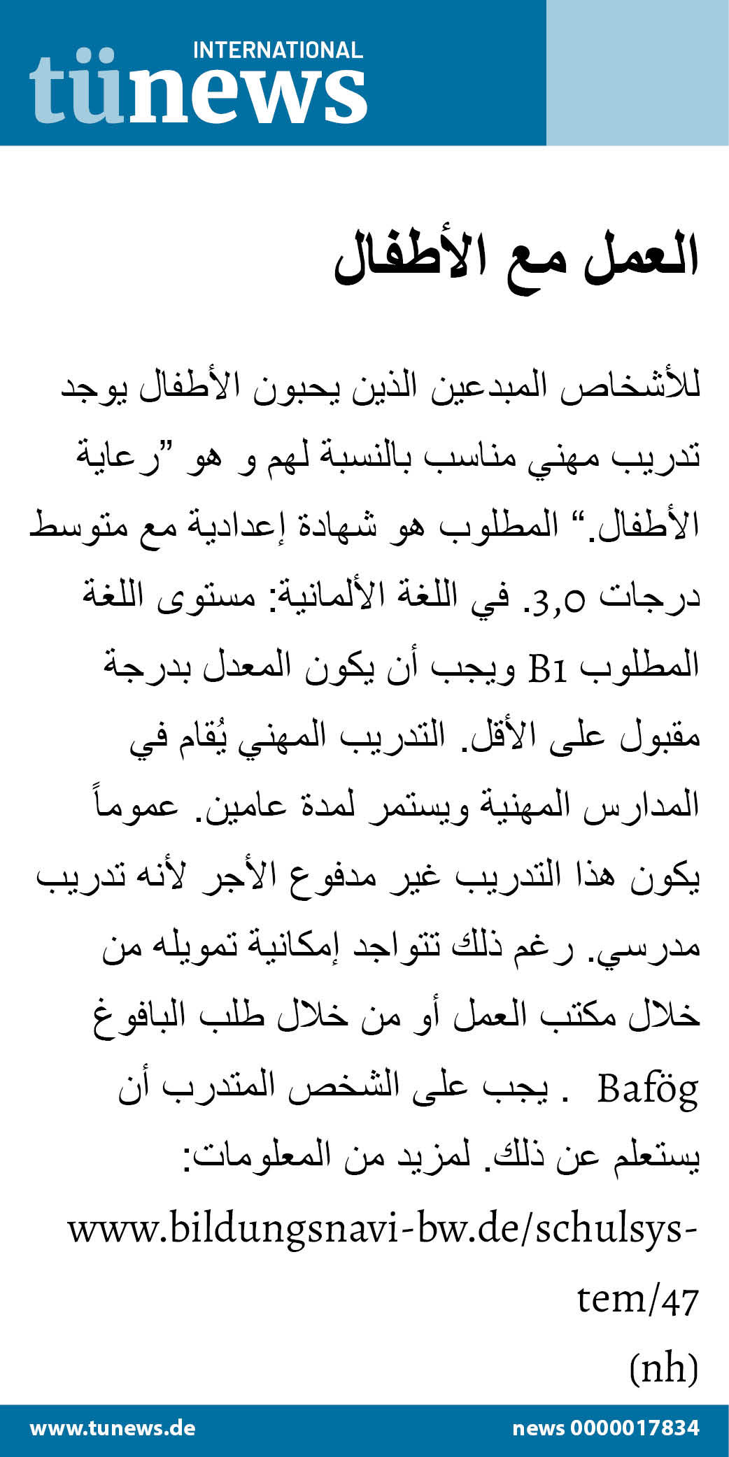 رعاية الأطفال“ التدريب المهني ال -ويجب أن يكون المعدل بدرجة مقبول على