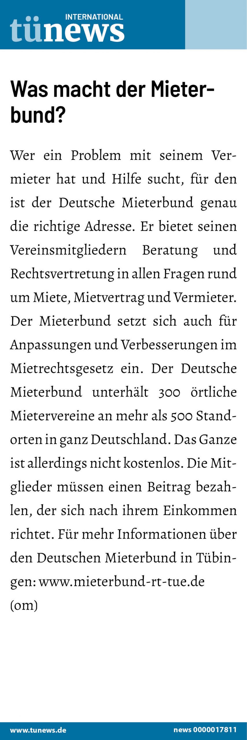 Was macht der Mieterbund?Wer ein Problem mit seinem Vermieter hat und Hilfe sucht