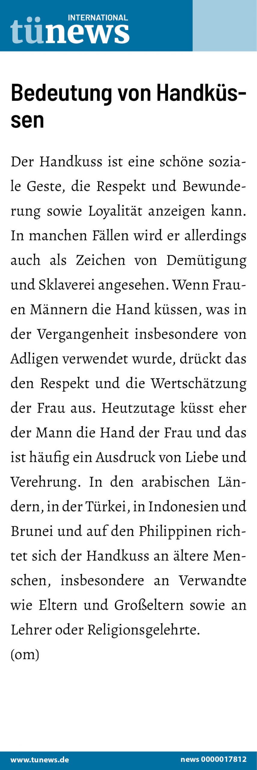 Was bedeutet der Handkuss?Der Handkuss ist eine schöne soziale Geste