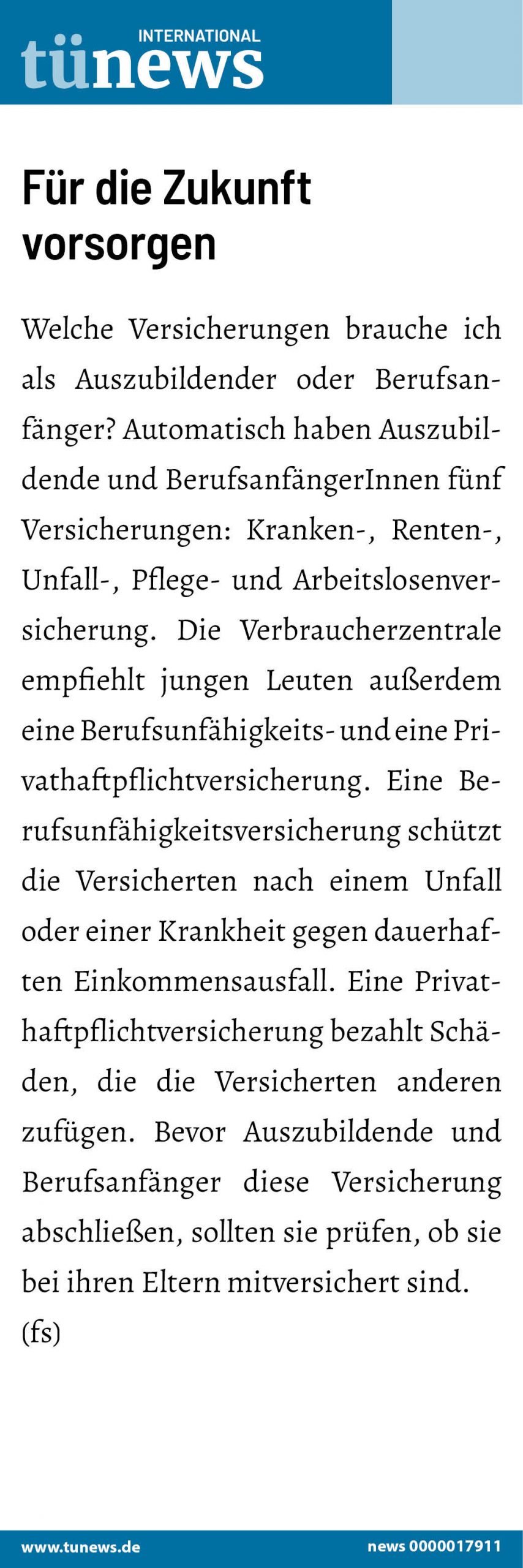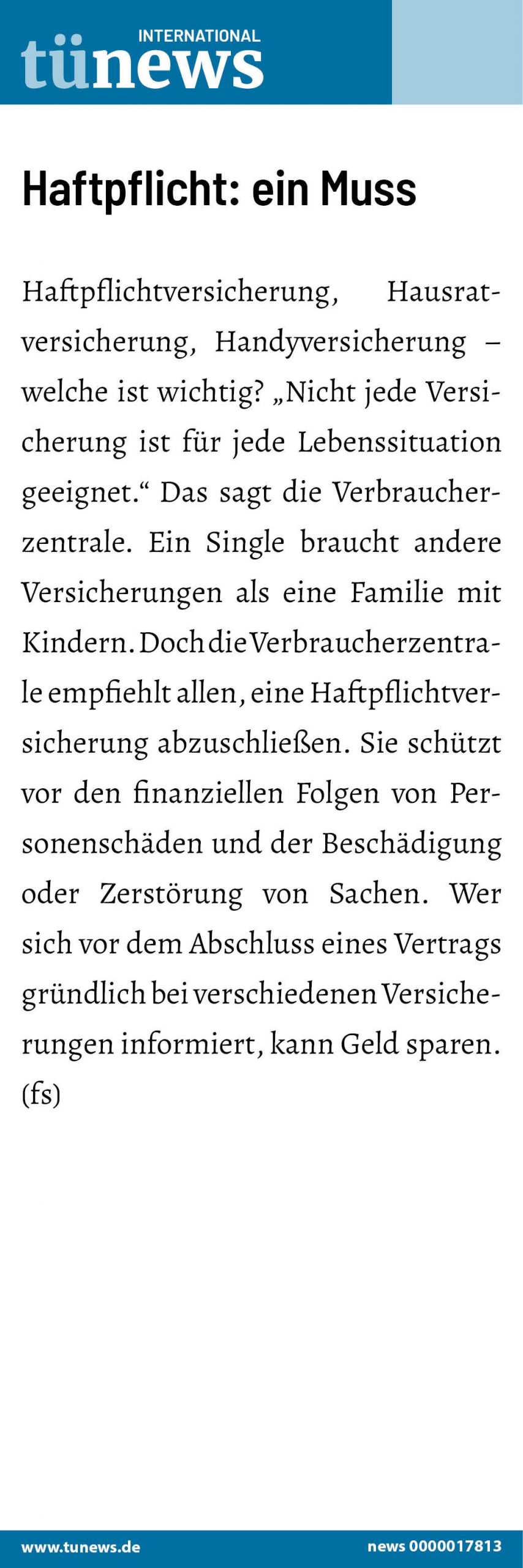 Auszubildende, Berufsanfänger, Die wichtigsten Versicherungen, Privathaftpflichtversicherung, Verbraucherzentrale