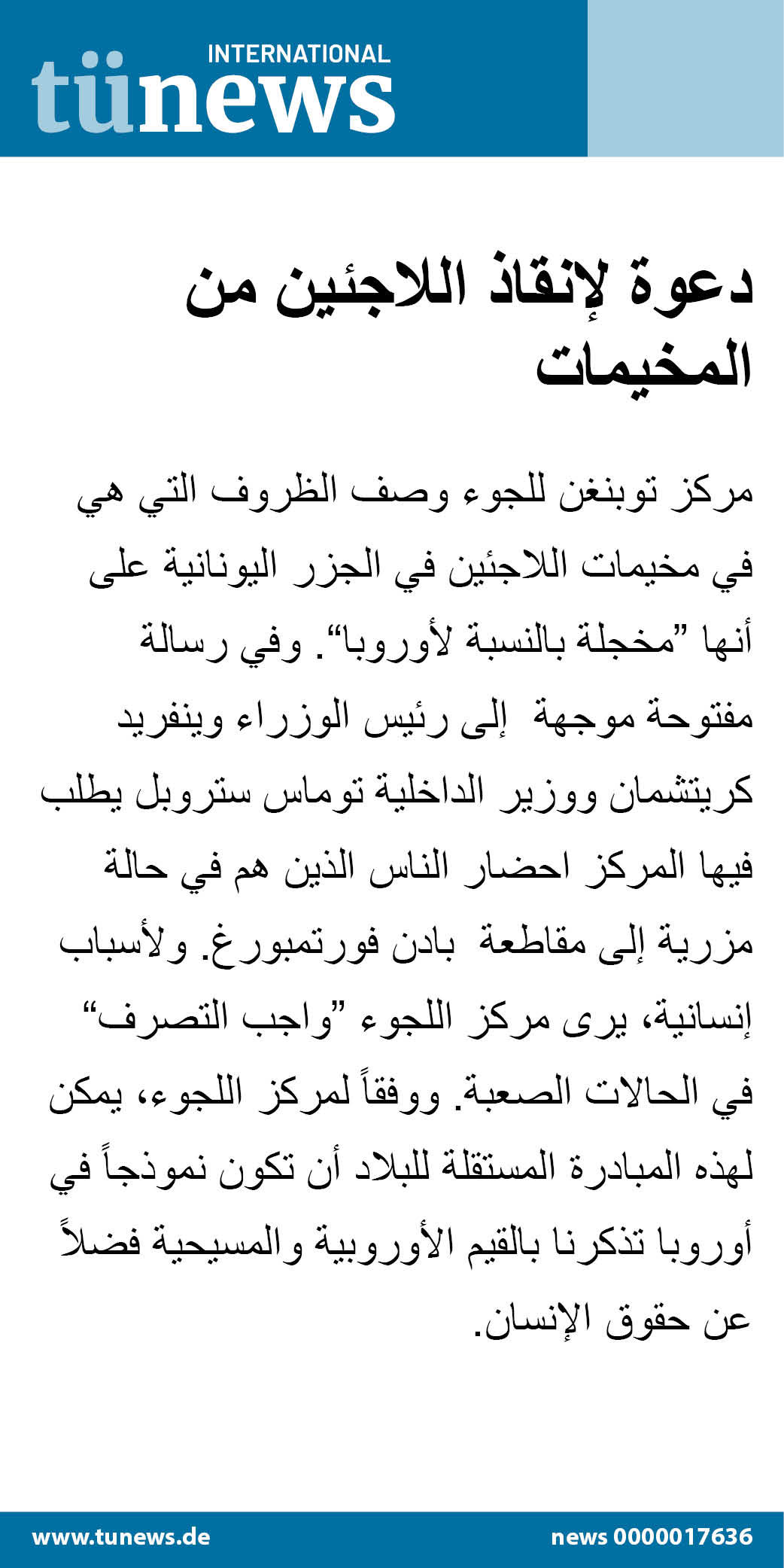 مركز توبنغن للجوء وصف الظروف التي هي في مخيمات اللاجئين في الجزر اليونانية على أنها „مخجلة بالنسبة