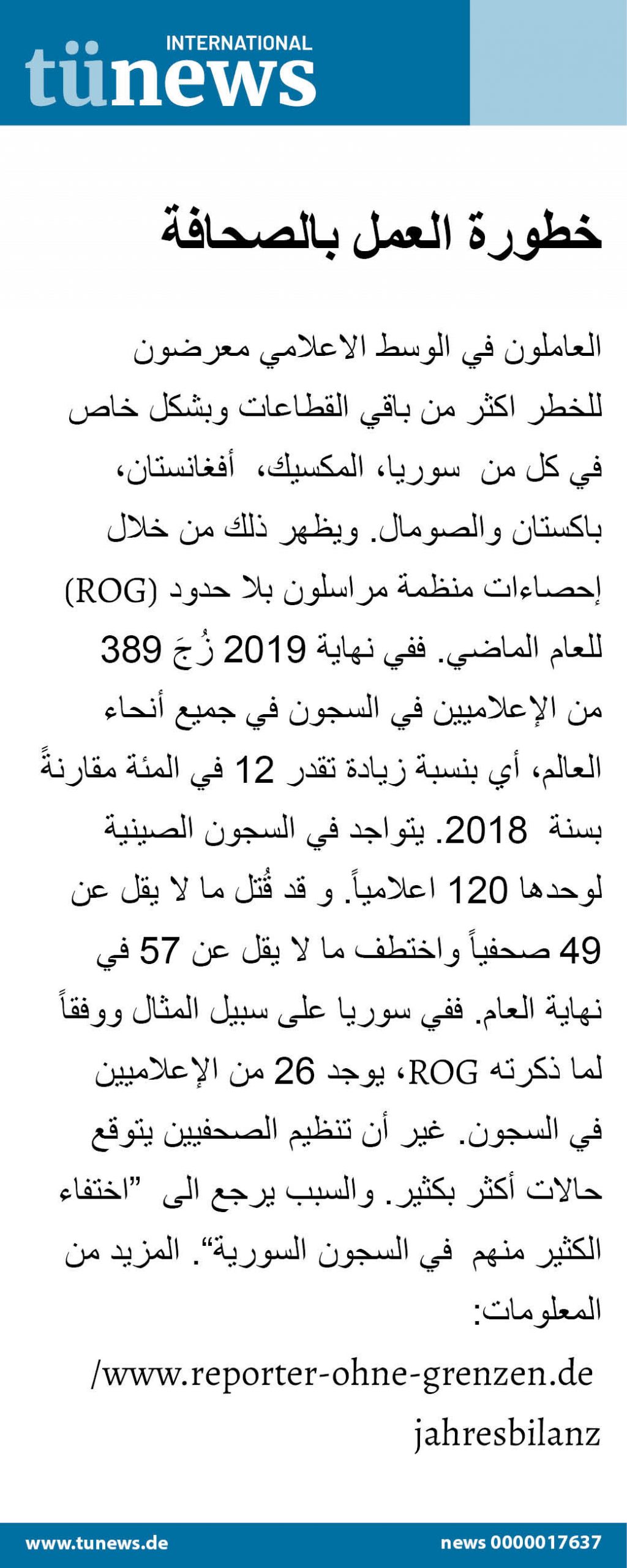 خطورة العمل بالصحافة – العاملون في الوسط الاعلاميللعام الماضي.