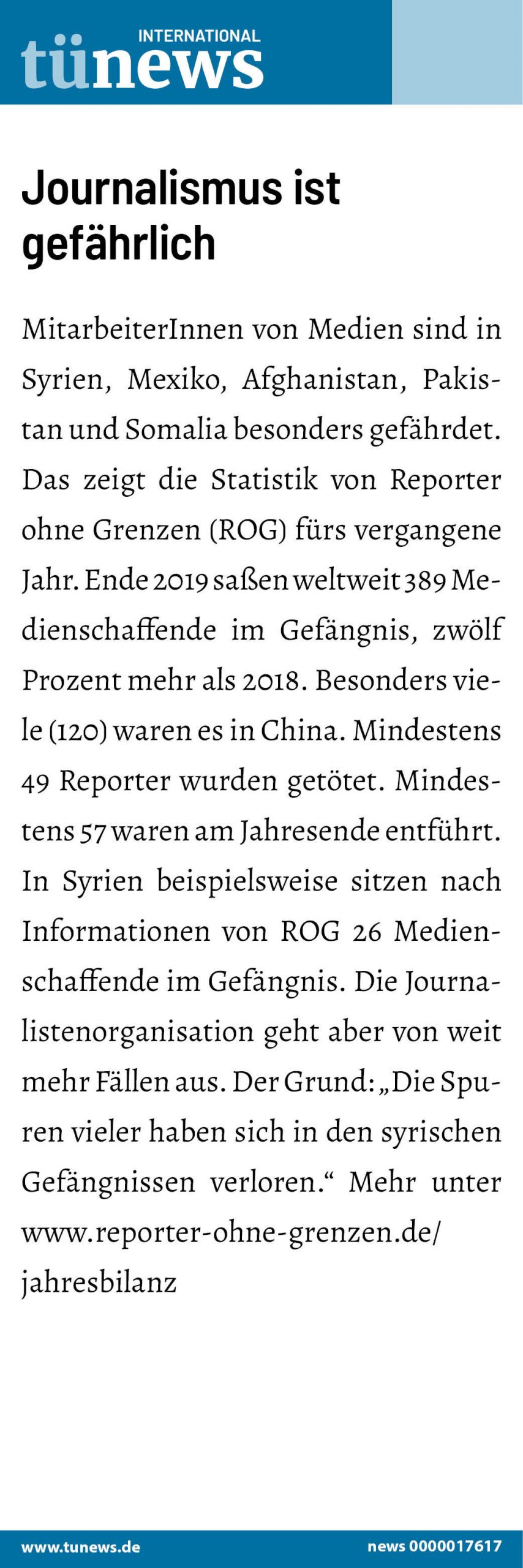 MitarbeiterInnen von Medien sind in Syrien, Mexiko, Afghanistan,