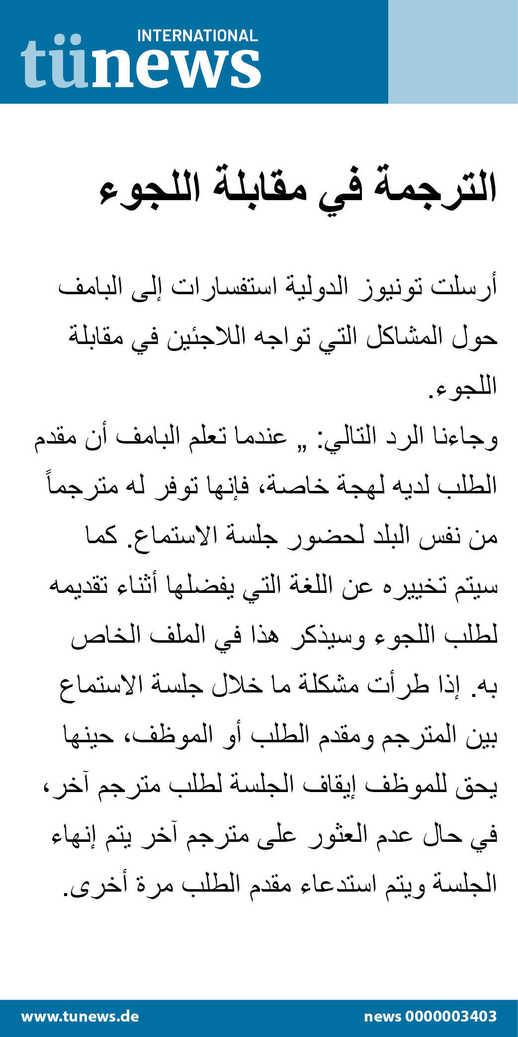 أرسلت تونيوز الدولية استفسارات إلى البامف حول المشاكل التي تواجه اللاجئين في مقابلة اللجوء