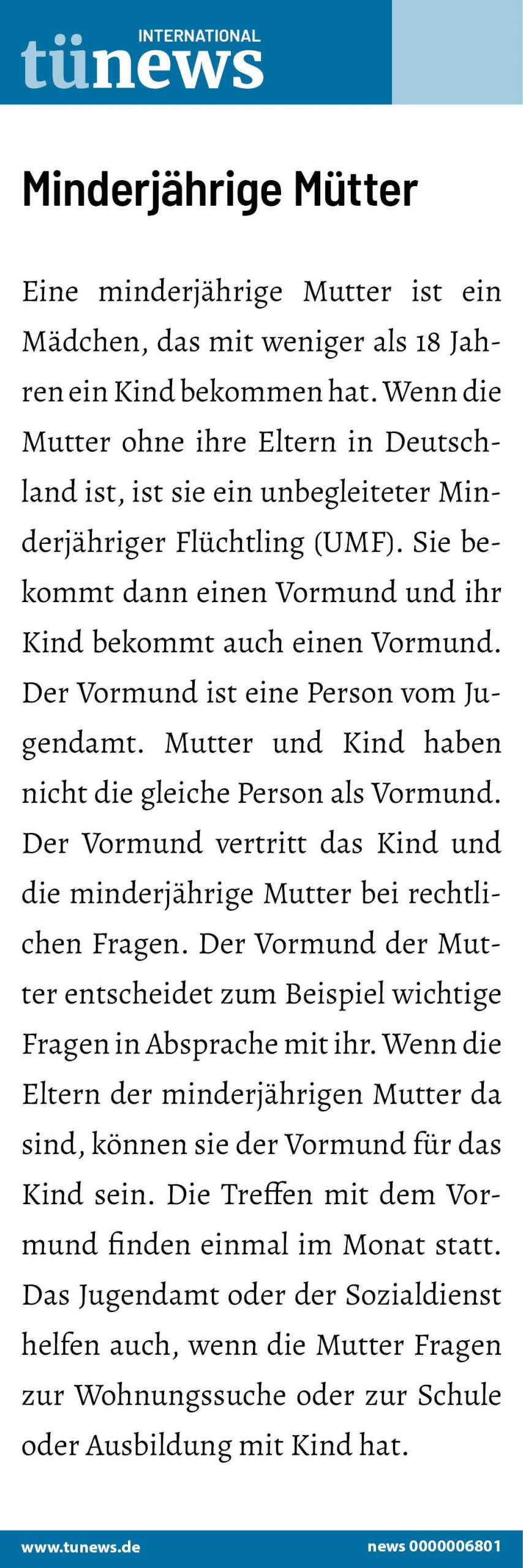 Eine minderjährige Mutter ist ein Mädchen, das mit weniger als 18 Jahren ein
