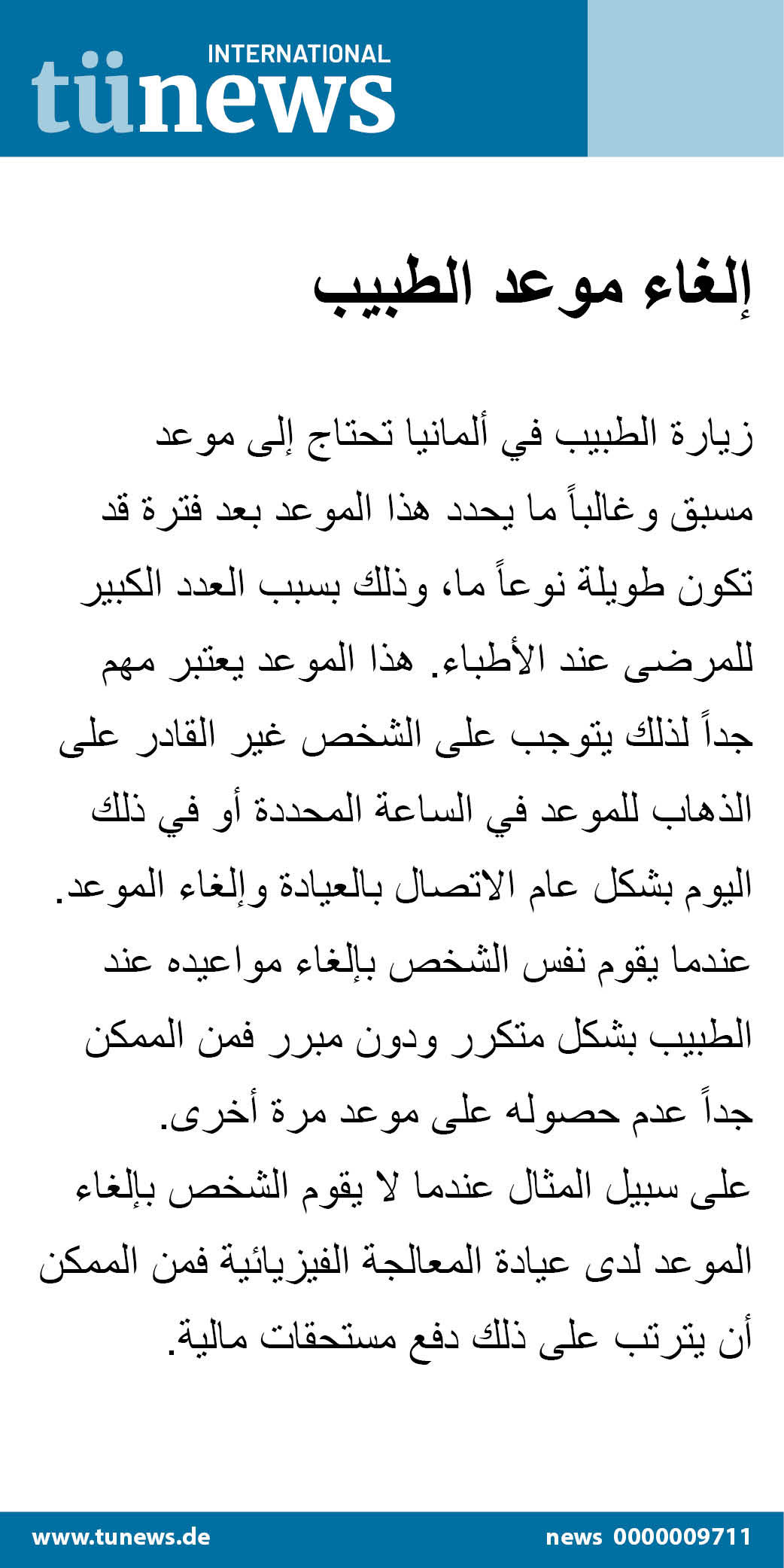 زيارة الطبيب في ألمانيا تحتاج إلى موعد مسبق وغالباً ما يحدد هذا الموعد بعد فترة قد تكون