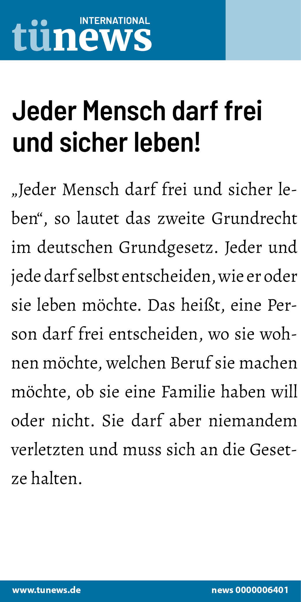 „Jeder Mensch darf frei und sicher leben“, so lautet das zweite Grundrecht im deutschen Grundgesetz.