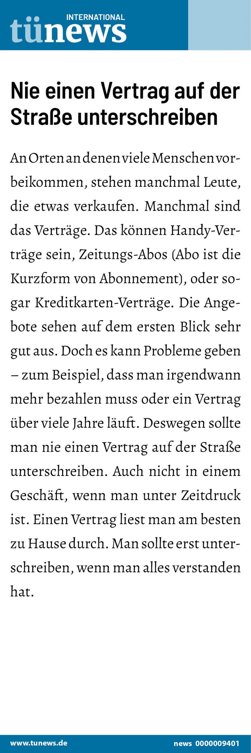 Nie einen Vertrag auf der Straße unterschreiben