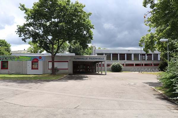 Die Turnhalle Feuerhägle in Tübingen-Derendingen. Foto: tünews INTERNATIONAL / Mostafa Elyasian.
