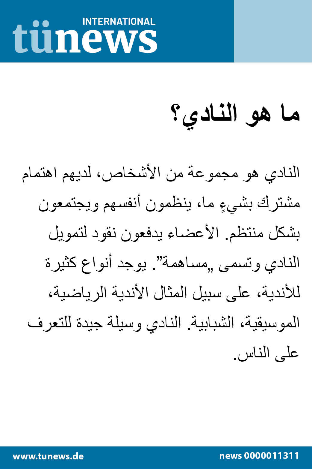 النادي هو مجموعة من الأشخاص، لديهم اهتمام مشترك بشيءٍ ما، ينظمون أنفسهم ويجتمعون بشكل منتظم…