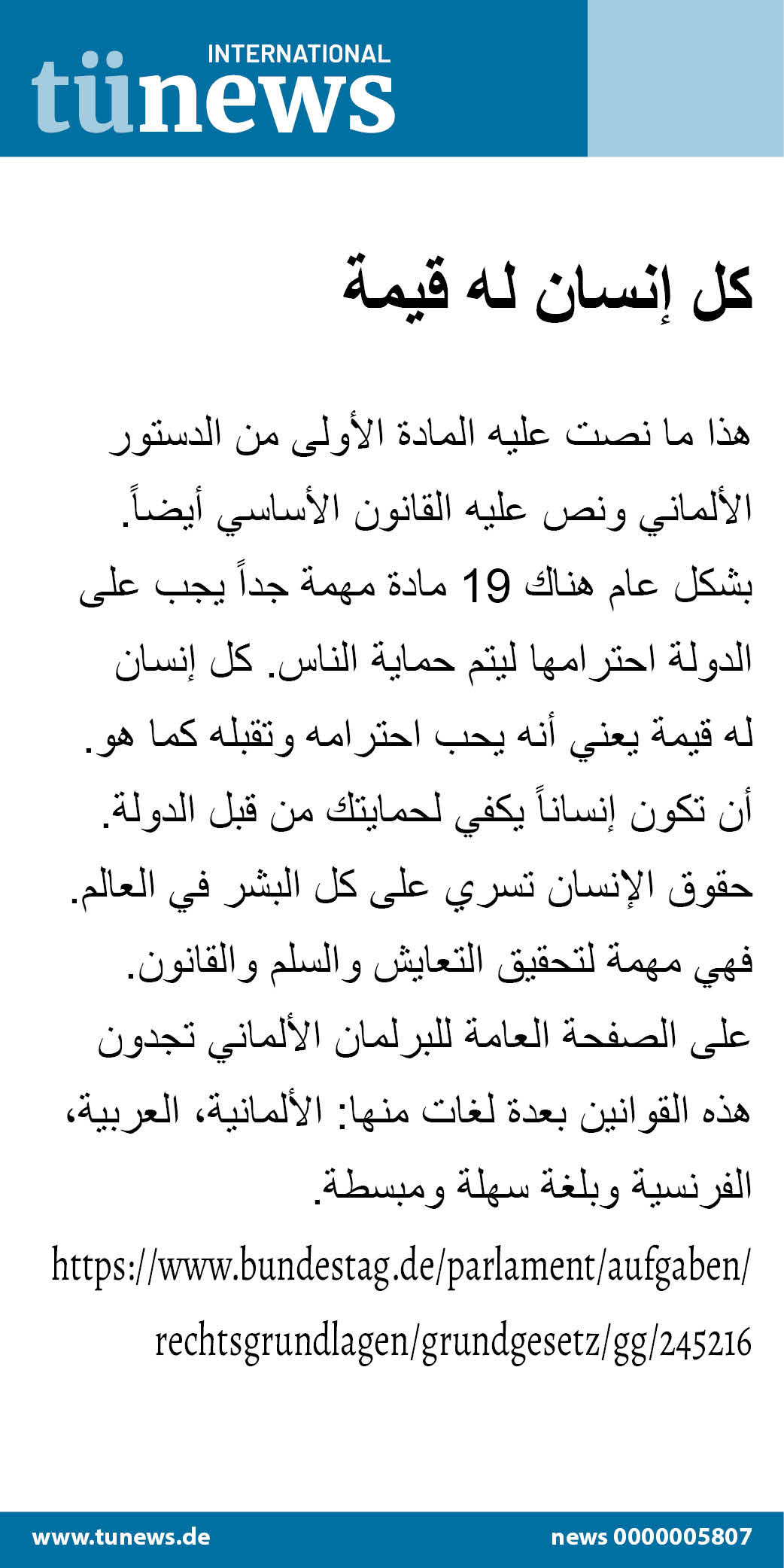 هذا ما نصت عليه المادة الأولى من الدستور الألماني ونص عليه القانون الأساسي أيضاً. بشكل عام