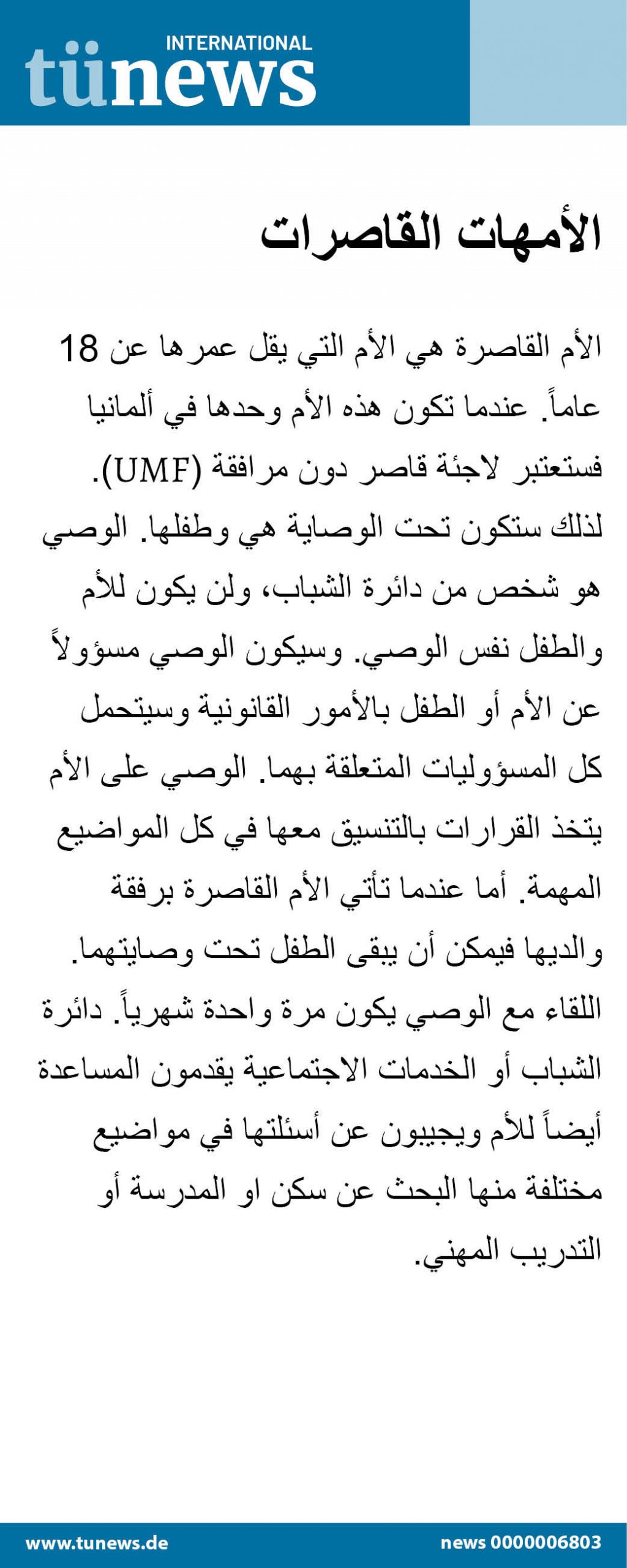 الأم القاصرة هي الأم التي يقل عمرها عن 18 عاماً. عندما تكون هذه الأم وحدها في ألمانيا فستعتبر