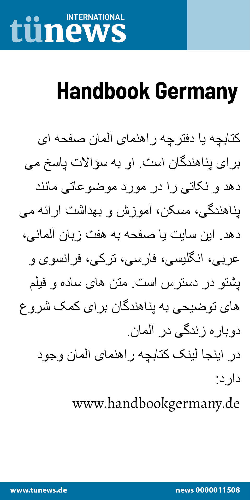 کتابچه یا دفترچه راهنمای آلمان صفحه ای برای پناهندگان است. او به سؤالات پاسخ می دهد و نکاتی…