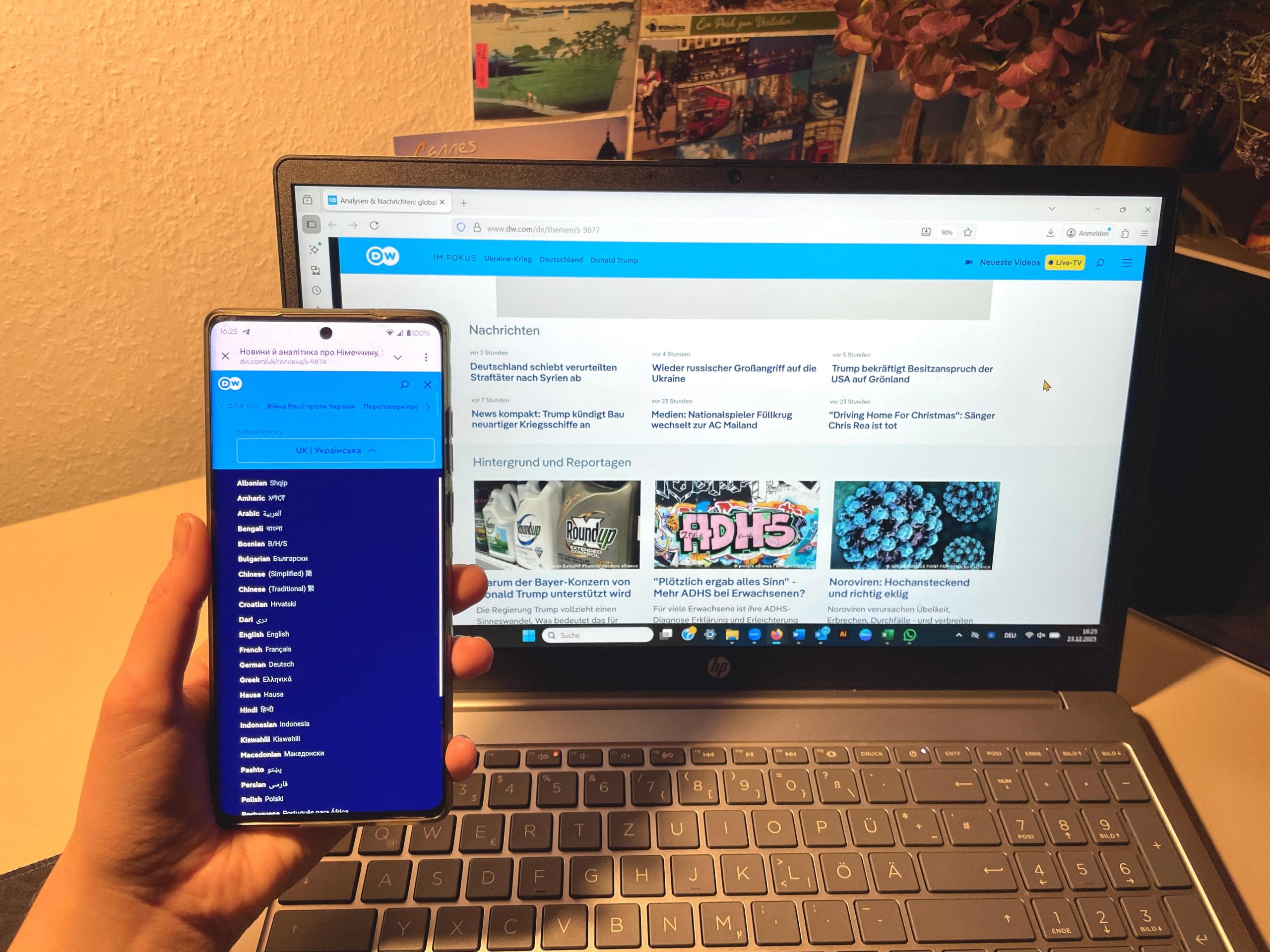 Die Website der Deutschen Welle www.dw.com/de/themen/s-9077 bietet Inhalte in 31 Sprachen an. So können Menschen aus vielen Ländern die Nachrichten in ihrer eigenen Sprache lesen oder hören. Dazu gehören zum Beispiel Arabisch (www.dw.com/ar/), Dari, Deutsch, Englisch, Französisch, Spanisch, Türkisch, Ukrainisch und viele andere.