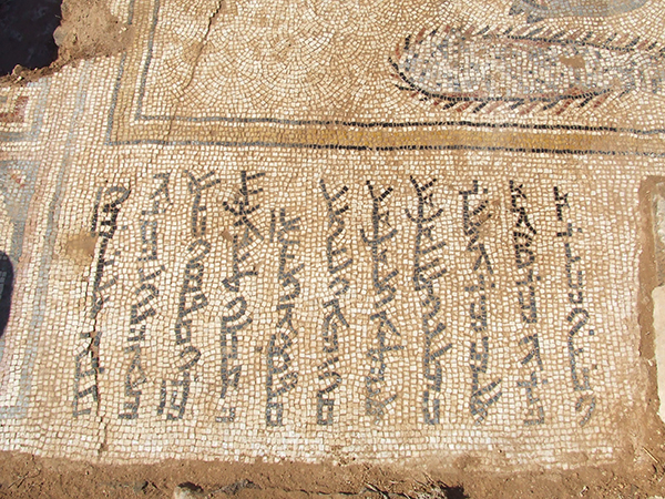Ältester bekannter Text in syrischer Schrift (406 nach Christus) auf dem Boden einer Kirche. Er wurde 2007 von Youssef Kanjou im Dorf Al-Nabgha in Nordsyrien entdeckt. Foto: tünews INTERNATIONAL / Youssef Kanjou.