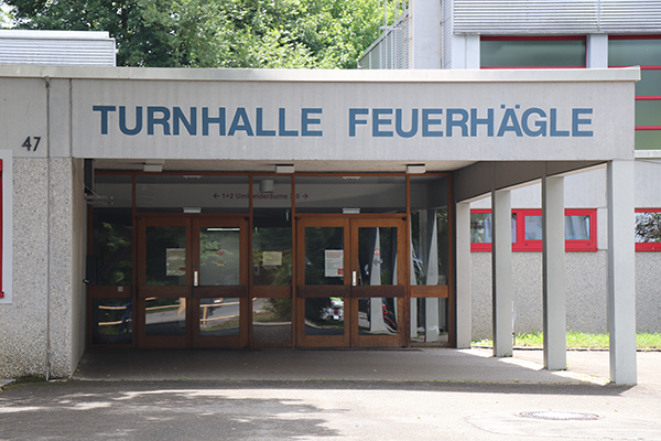 Die Turnhalle Feuerhägle in Tübingen-Derendingen. Foto: tünews INTERNATIONAL / Mostafa Elyasian.