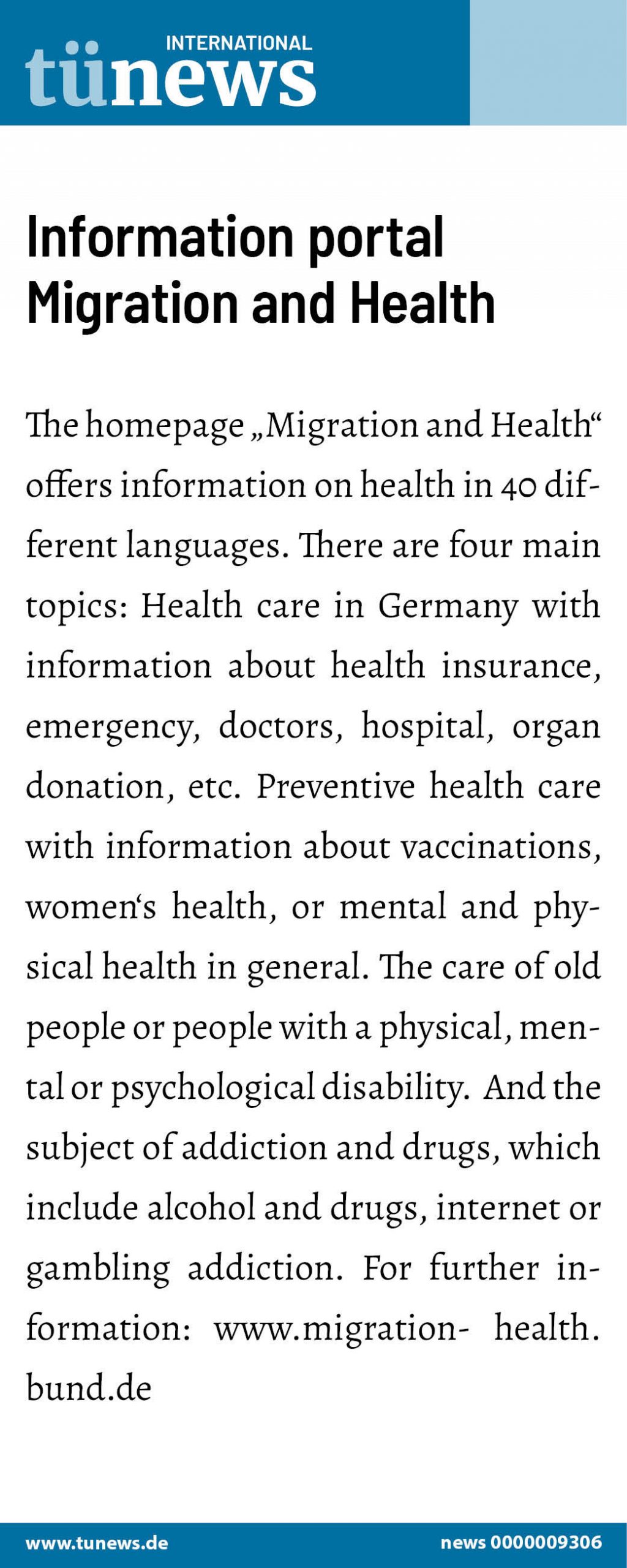 The homepage “Migration and Health” offers information on health in 40 different languages.