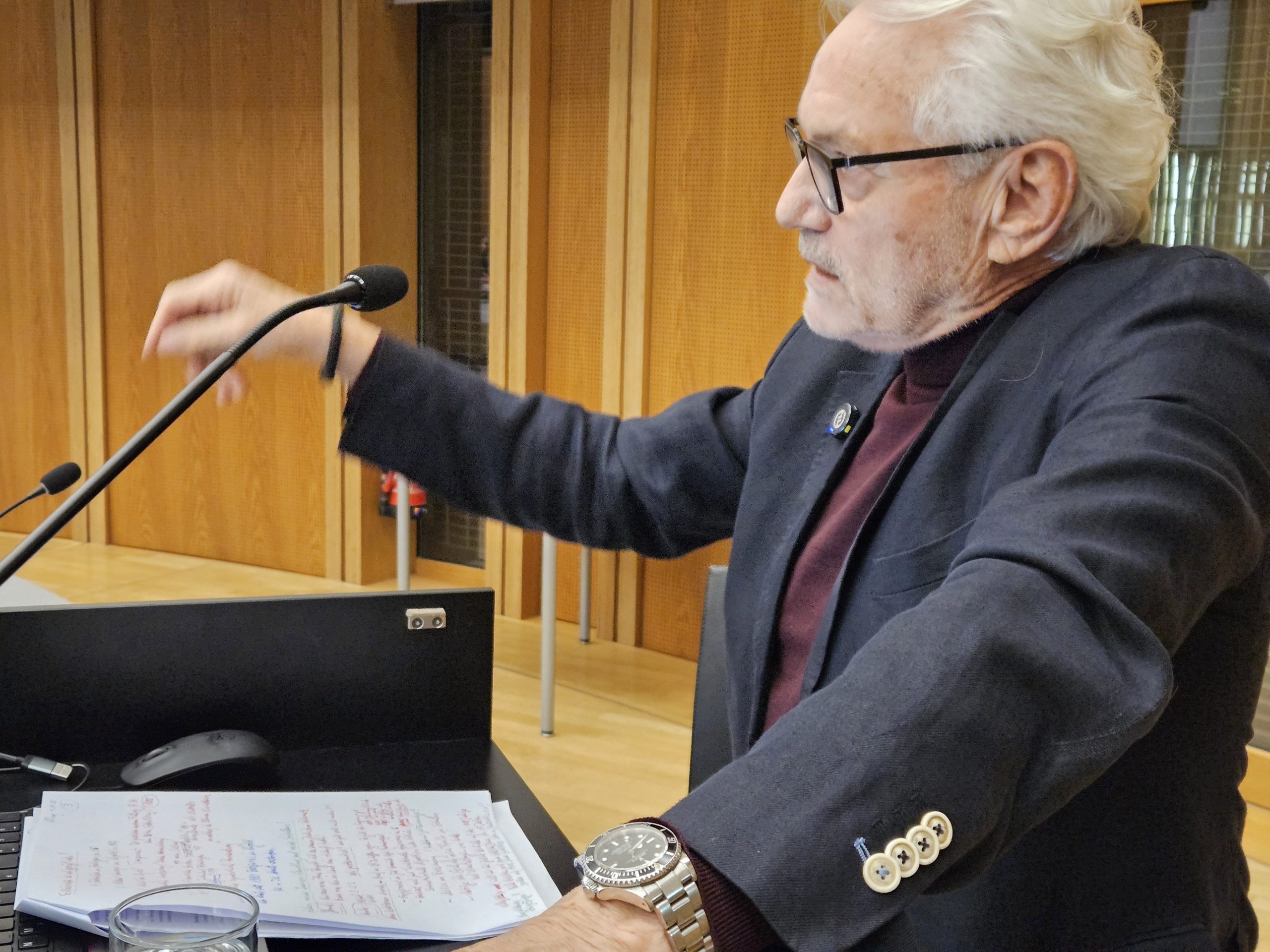 Dr. Fredy Kahn ist der Sohn des Baisingers Harry Kahn, der die Shoah überlebte und nach seiner Befreiung 1945 in das heimatliche Dorf zurückkehrte. Fredy Kahn erzählte am 5.11.2025 bei einer Veranstaltung des Landratsamts Tübingen aus seinen Erinnerungen an schwäbische Dorfjuden, seine Familie und sein eigenes Leben in Baisingen und Nagold. Seinen Vortrag hielt Kahn anlässlich der Hands-In-Ausstellung „Unsichtbar – in der Mitte der Gesellschaft? Gesicht zeigen gegen Antisemitismus!“ von Lissi Maier-Rapaport und Peter Krullis, die Landrat Hendrik Bednarz an dem Abend eröffnete. Ein Video der Jugendguides-Redaktion von KulturGUT und dem Landkreis Tübingen, W. Sannwald 2025.