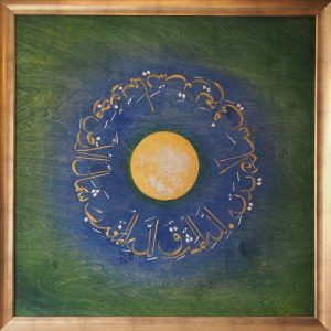 Ich sah mit Staunen und Vergnügen, Eine Pfauenfeder im Coran liegen, Willkommen an dem heiligen Platz! (Zitat von Johann Wolfgang von Goethe) Foto: Kalligraphie von Shahid Alam. In: Kuschel, Karl-Josef (2021): Goethe und der Koran.