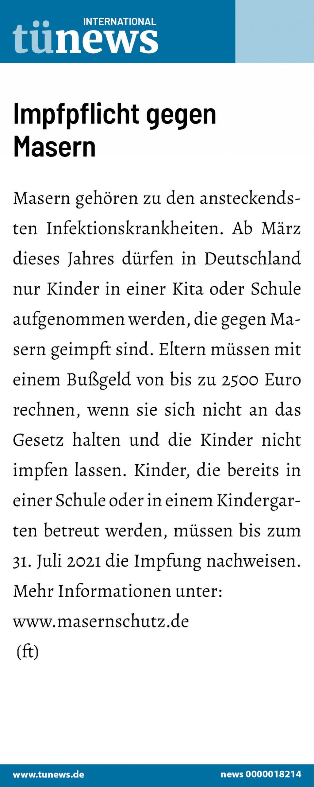 Impfpflicht gegen Masern für Kinder in Kitas, Kindergarten