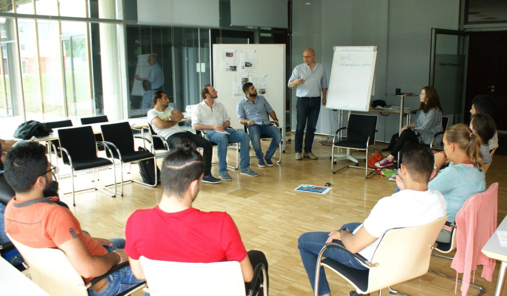 Повернемося до початків із деякими яскравими моментами: пізньої осені 2015 року міжкультурна команда не могла передбачити, як розвиватиметься медіапроєкт. Його ініціював Вольфганг Заннвальд, який за основним фахом є окружним архіваріусом і керівником відділу зв’язків з громадськістю окружної адміністрації (LRA), за підтримки прессекретарки LRA Мартіни Гуіцетті. Разом із ними вісім жінок і чоловіків з великим ентузіазмом взялися до роботи. Спочатку тексти виходили для волонтерів із місцевих груп допомоги біженцям: англійською, арабською та у скороченій німецькій версії. Згодом додали дарі/фарсі. Це стало можливим завдяки ідейній та фінансовій підтримці округу. Редакція також могла розраховувати на співпрацю з народним університетом.